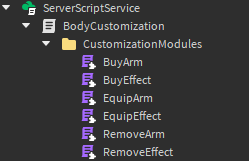 Hi! I’m trying to make a customization system. There are multiple ModuleScripts for each function. Buy, Equip, Remove and more. But the script doesn’t see the ModuleScripts in that moment somehow.
