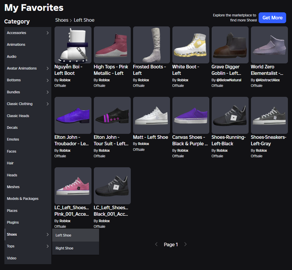 Since UGC creators were allowed access to create shoe bundles a few months back, I’ve favorited quite a few, but I hadn’t favorited the shoes themselves. Without finding them in the marketplace again I have no easy way of accessing them.