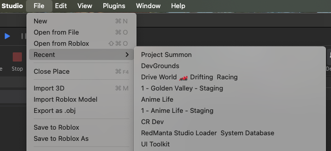 As a Roblox developer it is currently not possible to quickly access subplaces thru the new studio design’s “Recent” dropdown. Often times we have many places related to development such as our UI toolkits, and other places we are modifying for an update. Right now this menu only shows top level universes.