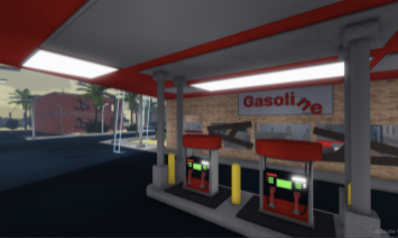 I love the detail you have in the pictures, especially the gas station. However, an abandoned town will not have electricity so I do not know how the gas pump screen is lit up. I would also spice the map up with textures of cracks in the road and more of the rust texture used in some places (this will make it look more abandoned for the player to experience). The nature you have included in your map seems like it’s being regulated by the municipality (however this town is abandoned) (especially the placement of trees). I would add more random bushes or stems popping out of road crevasses to make it looks more abandoned, and natural eating over these ruins.