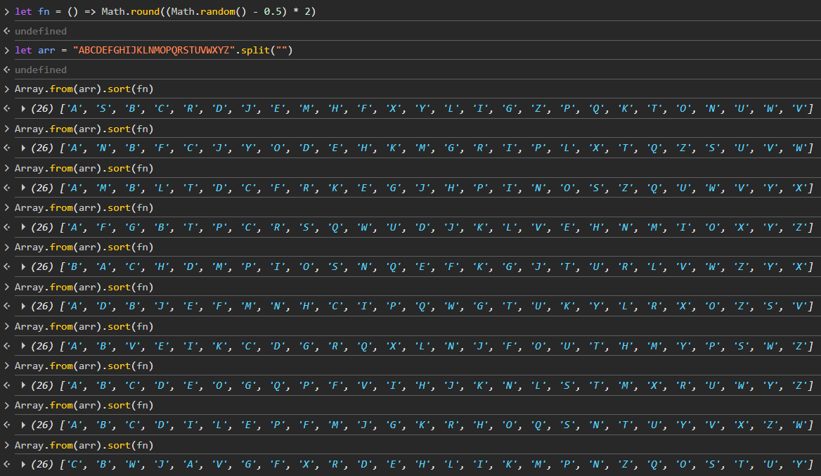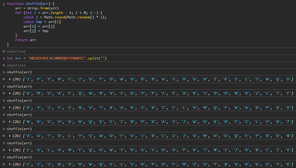 Here’s what it would look like if you wanted to sort it using Fisher-Yates manually: