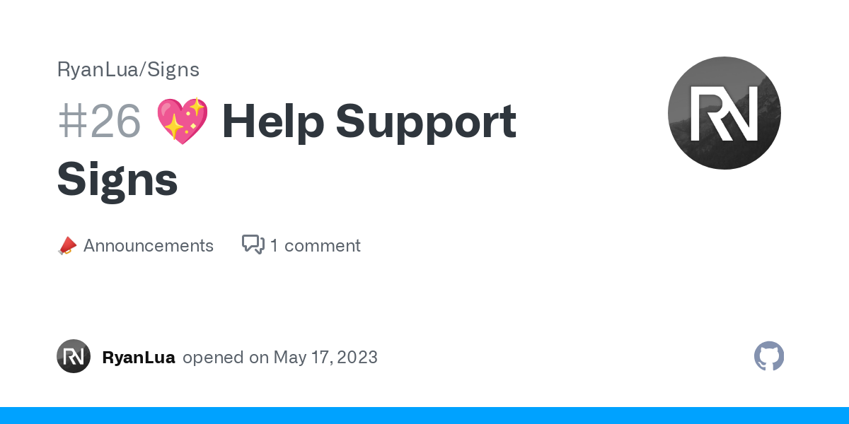 We love to hear you’re enjoying Signs. You can support Signs by starring this repository or rating us on the Creator Marketplace. If you want to support us financially, you can sponsor us on GitHub or buy Signs on the Creator Marketplace if you haven’t so already.