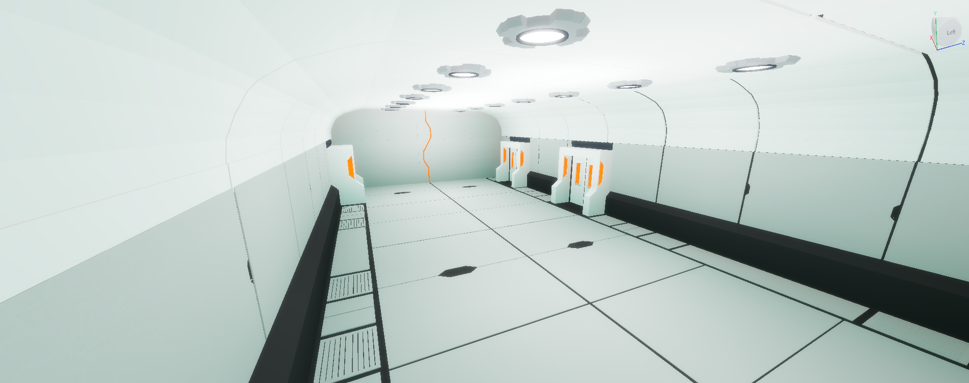 The end of the corridor is a missed opportunity to add some extra world building. Some ideas include a window, an airlock door, control panels, the list goes on. Get creative with it!