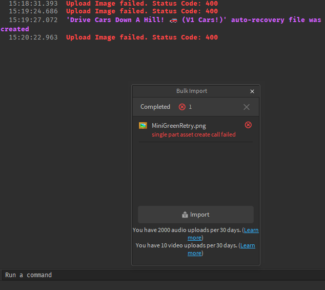 But when I made a new baseplate and imported it there I didn’t get the erros.