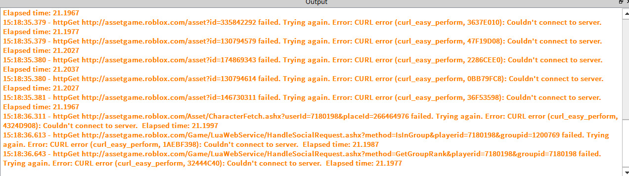Sometimes I get the joining place error, other times it works. It’s like a 40% chance it won’t work. And for testing my game, there’s a 50% chance my appearance won’t load, animations won’t load, music won’t load etc. but other times it’s fine.