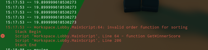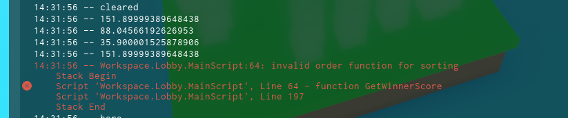 I am getting this error with table.sort() for sorting values lowest to highest.