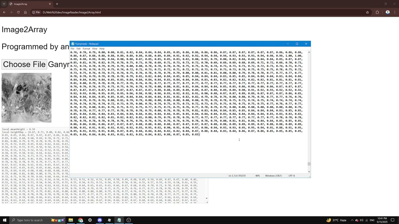 Image2Array extracts brightness value of each pixel