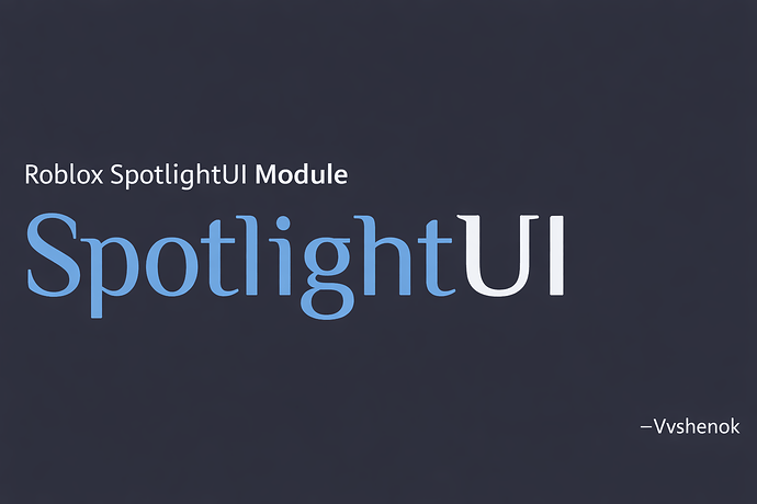 SpotlightUI is an open-source guided focus module that lets you quickly build interactive tutorials, onboarding flows, and visual guidance systems in Roblox with just a few lines of code. It allows you to highlight UI elements and world objects using dynamic spotlight masks, pulsing effects, and step-based sequences through a clean, chainable API.
