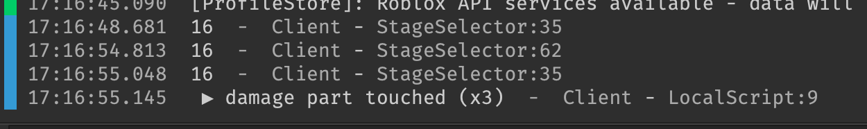 It works normally when I change stages at a normal rate; however, when I start spamming my clicks, the output goes crazy. The stage selector starts buffering as well. I’m pretty sure I need to add some sort of delay so that the server finishes responding to the client, but I feel like I’m doing it wrong.