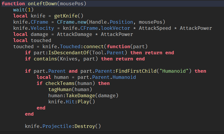 knife.Velocity = knife.CFrame.lookVector * AttackSpeed * AttackPower