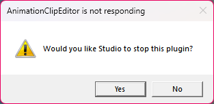 After pressing “Yes” on the not responding dialog, Studio correctly stops and reloads the plugin, but never clears the memory it took up prior to being reloaded. (in this case, Animation Editor after attempting to import an fbx file with fairly complex animation data)