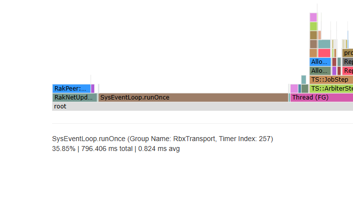 In a game I work for we have noticed a massive surge of “Total Data KB/s” on the server-side (sometimes reaching up to 40 MB/s) correlated with replication/streaming tags in the server-side microprofiler along with a new tag we’re unfamiliar with, SysEventLoop.runOnce(), which is present in 100% of our frames and we couldn’t find any documentation for, labeled under the “RbxTransport” group.