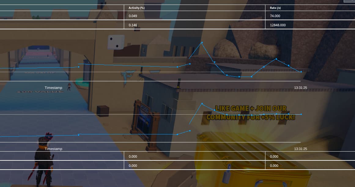 Although the issues weren’t as consistent as in the main game, this can likely be explained with player count - the test had ~20 players, whereas a full server harbors 50. The problem shouldn’t occur anyway, regardless of player count. We made sure to check RemoteEvent incoming data as well as the ScriptProfiler and can confirm that nothing in either one appears abnormal. Incoming data from RemoteEvents had an average of 5 KB/s, and ScriptProfiler showed minimal computation time for scripts.
