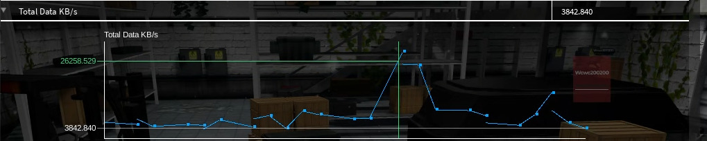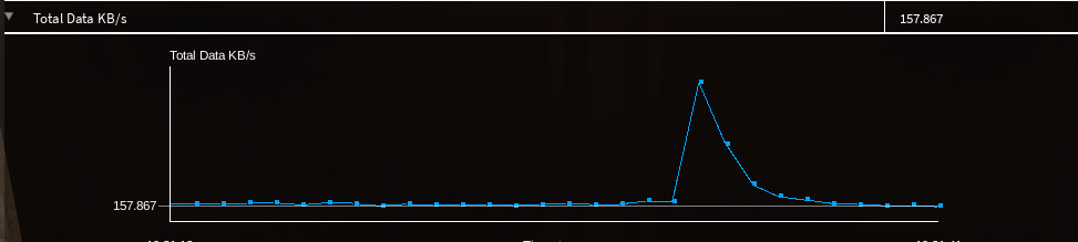 Unfortunately I was not able to find a consistent way to repro this… it sort of just happens in general, sometimes even in a server with 1 player, by myself, I can experience increased network usage for no clear reason. However, it’s a lot more common in fuller servers.