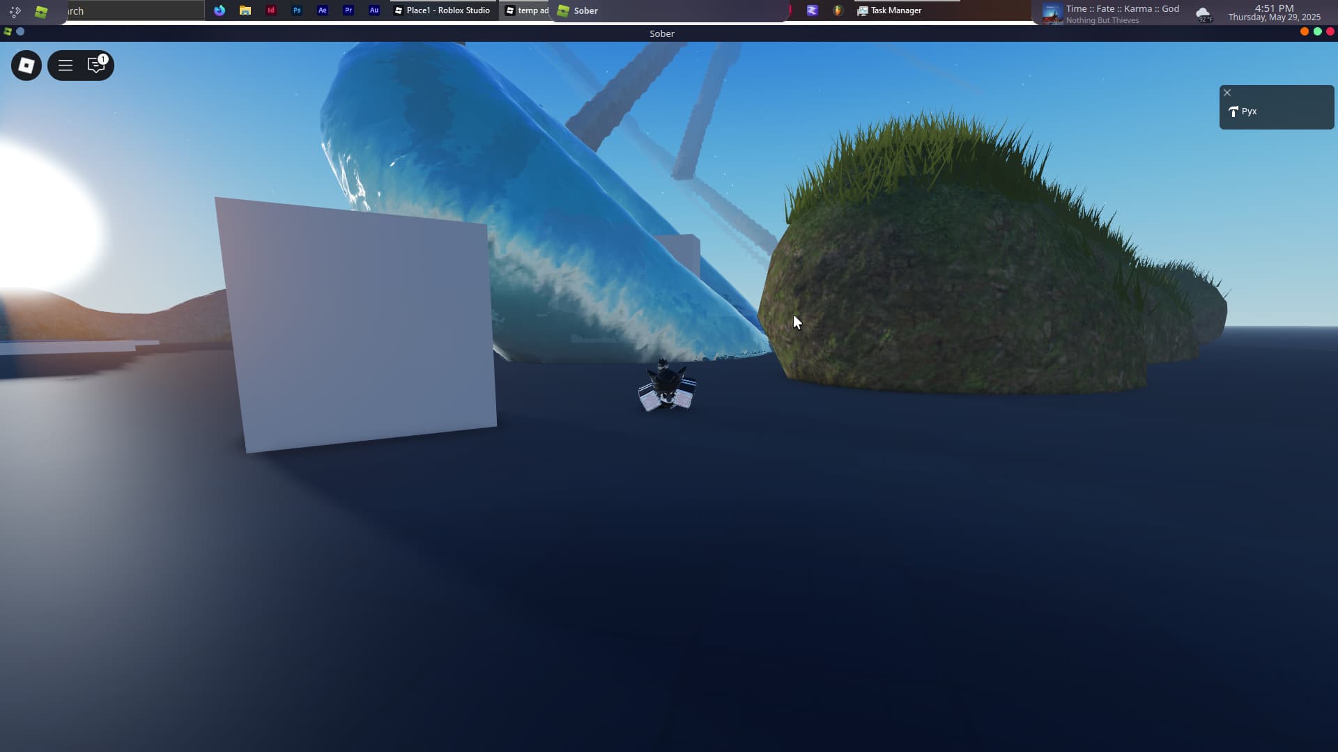 If you place water in a certain way, it will result in an animation getting stuck, like so:
