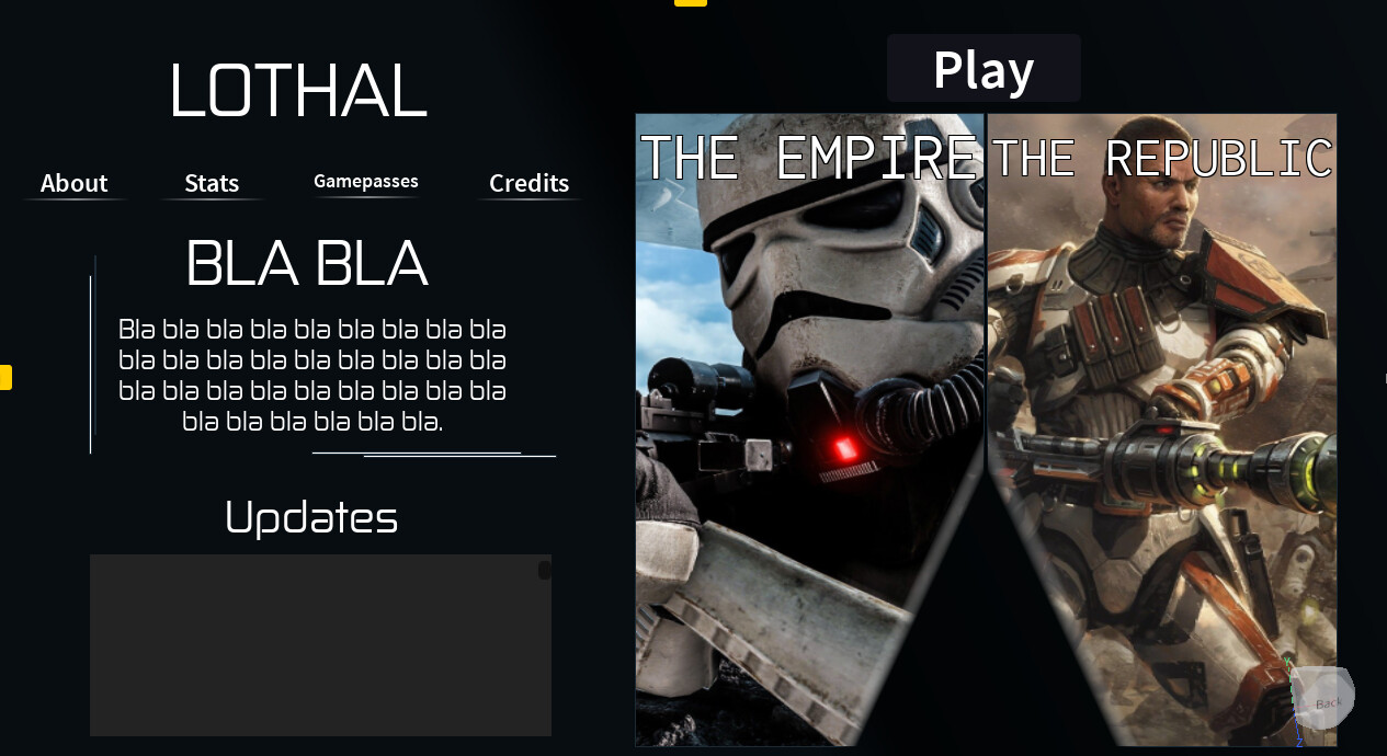 Hello there! My name is Synserix (Also called Jorvc) and I am a User Interface Designer, Graphics Artist (3D), and semi-programmer here on Roblox. I plan to work with a lot of people and progress in my UI, getting possibly better! I do plan on using third party programs to make UI in the near future, but for now I use Studio. Thanks for reading!