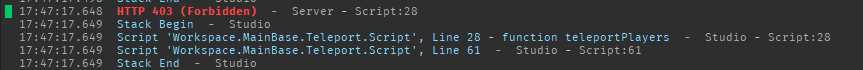So I did fix the script up a little bit but I got this error, I heard that it will go away when I test it on the actual Roblox but I did and it didn’t teleport me nor did it give me any errors…