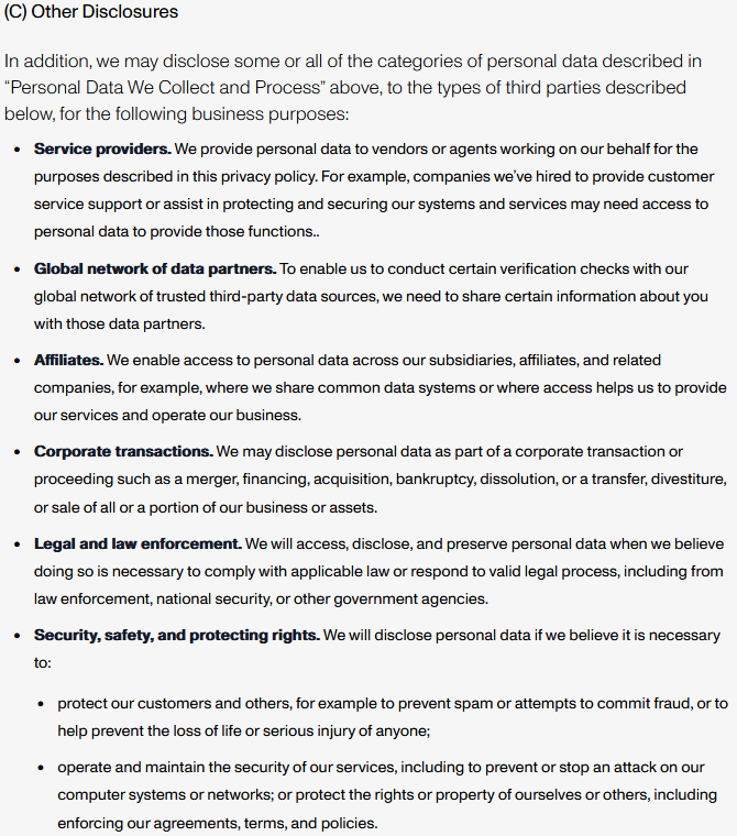 (From the Persona’s “Privacy Policy for Persona Identity Verification” page)