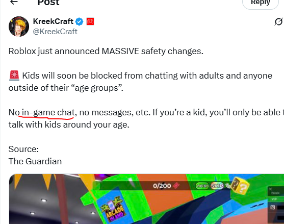 Wait so I don’t think this was mentioned in the original post, so this will essentially prevent 18- users to chat with 18+ users? That WILL ruin games. All because Roblox will not for the life of them, hire better moderators… Fucking shame on them.