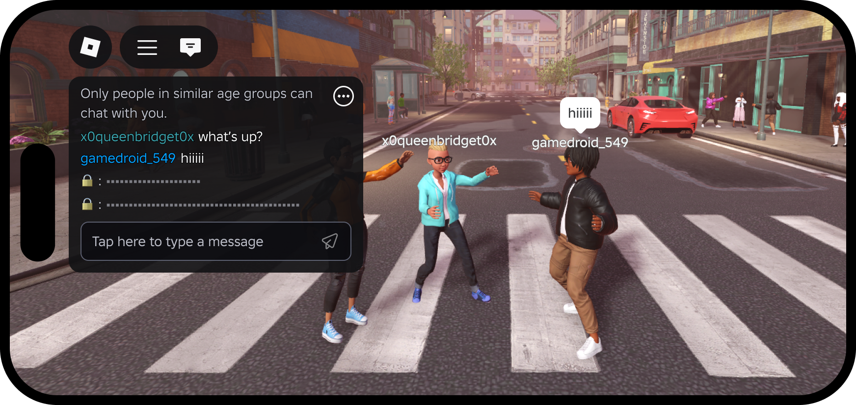 - For age-checked users: It provides community energy and context, showing that players are chatting in an experience even when text is hidden by age group.