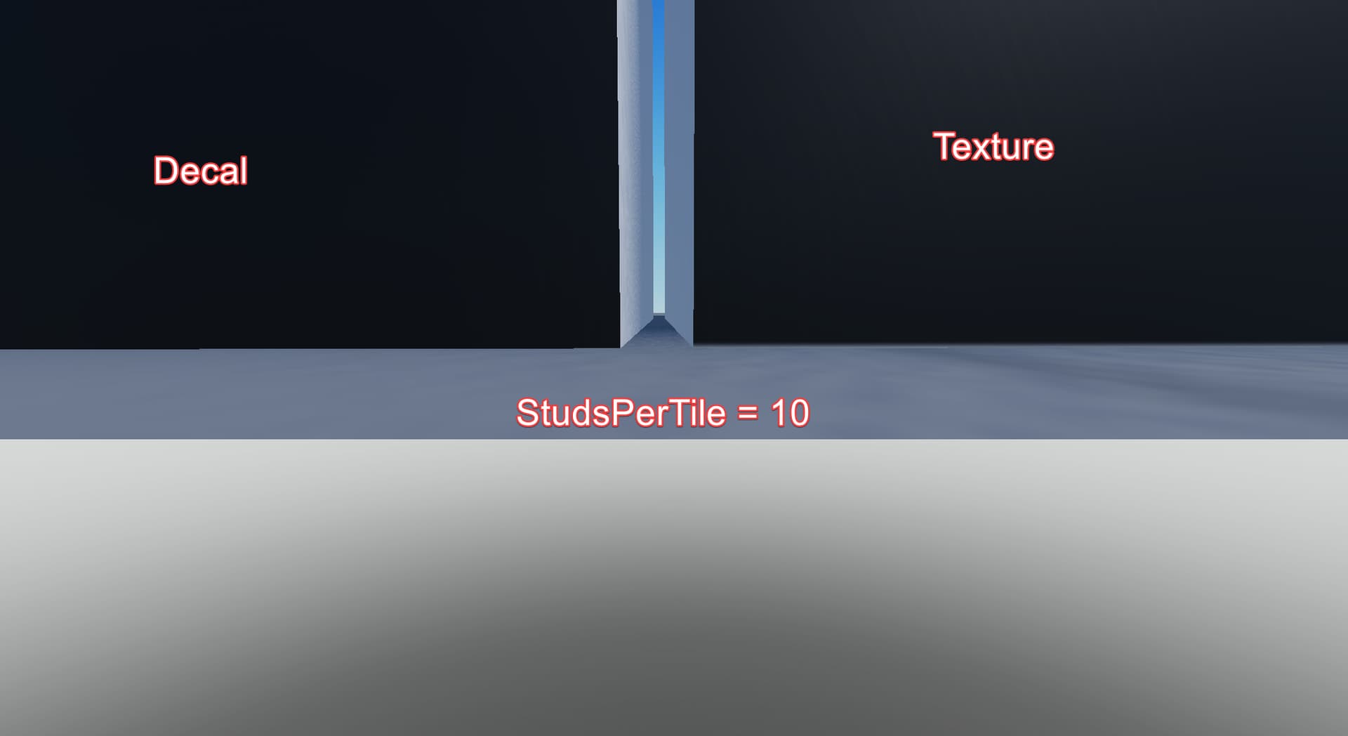 This is because Texture and MaterialService allow the texture to be tiled, whereas decals do not. Setting the mode to clamp in a scenarios where the texture was supposed to be tiled looks wrong: