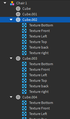 I am currently making a project and need to import stuff from my game to blender. When I do this, Items that have direct texture split and lose their color. I am not using the material manager. I didn’t use the material manager because at the time it was broken so I manually set up the texture for each leg of the chair.
