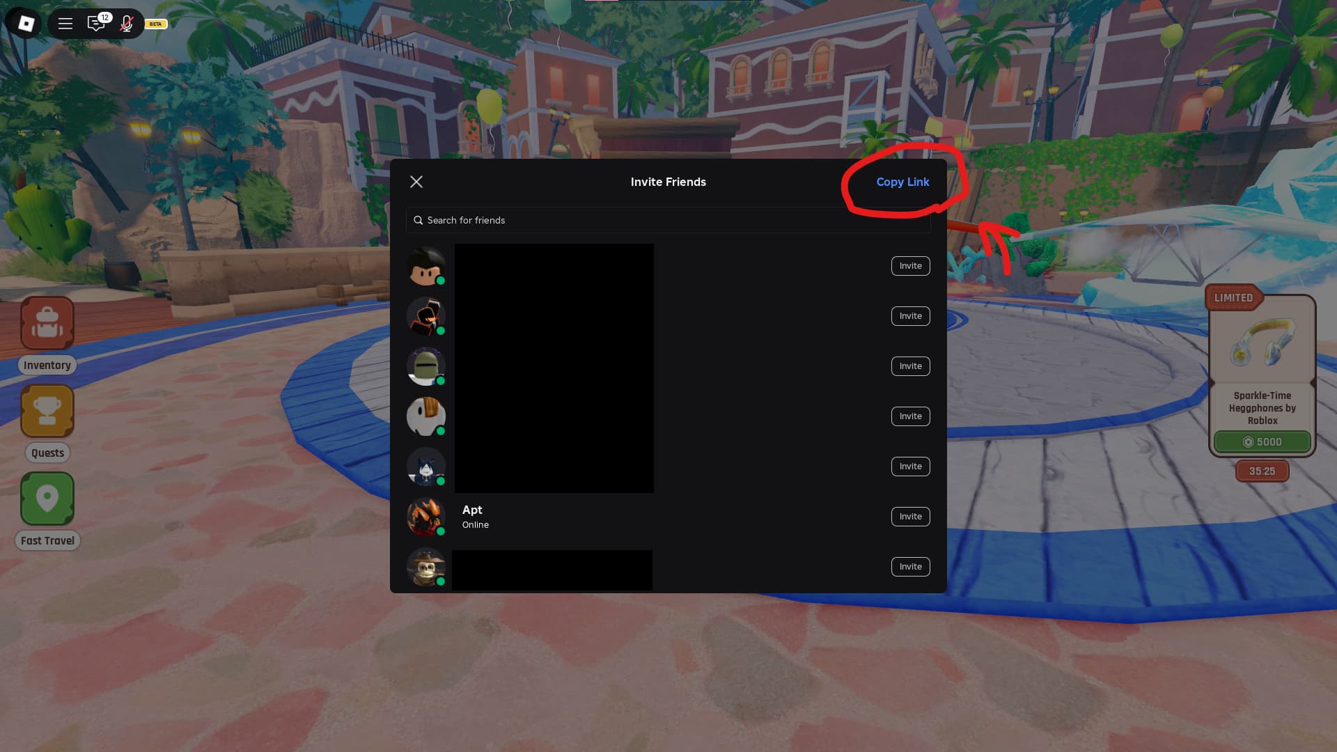 She went into the game, went to invite, and instead of inviting through the invite buttons, you press copy link and send that link to the people you want to invite.
