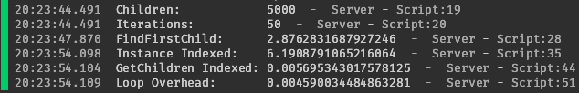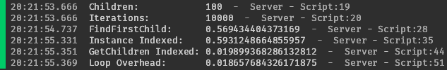 Then below 100 children, indexing is fastest. Above 100, FindFirstChild seems to be faster.