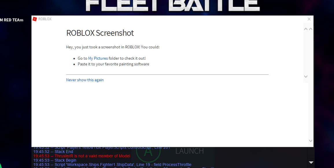 ROBLOX needs an overhaul of screenshotting in general. Doesn’t it take ~5 seconds to save one? Also interferes with my screenshot programs which offer me more control over screenshots (region capture/etc)
