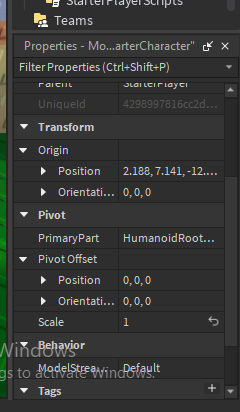 And you change the PrimaryPart to the HRP for the players character as well?