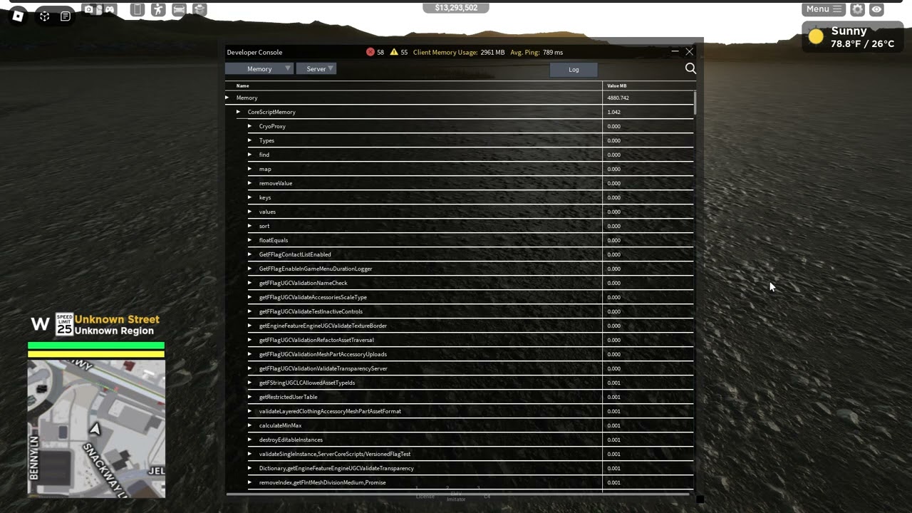 In the video below, at the VERY beginning, you can see PhysicsParts was hovering around 1059 MB. When I cleared my workspace, it went down to 473 MB. It went down, as it should. HOWEVER, the total memory value (the very top value) remained the same, as if it didn’t recognize the change within the PhysicsParts memory value-- it was frozen.