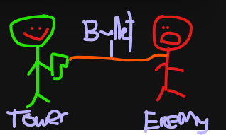 bullet.CFrame = CFrame.new(tower.HumanoidRootPart.Position, (enemy.HumanoidRootPart.CFrame * CFrame.new(0, 0, distance/2)).lookVector)
