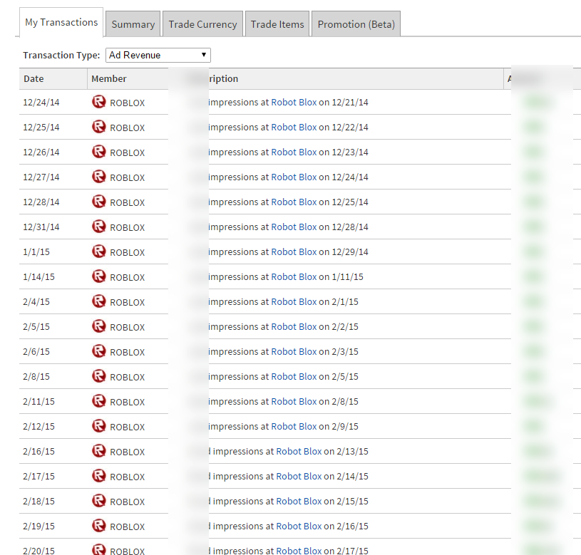 The “Ad Revenue” view on the “My Transactions” tab does not show the latest results at the top.