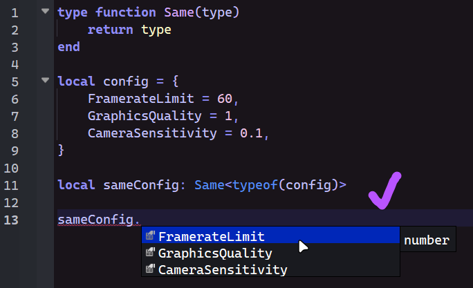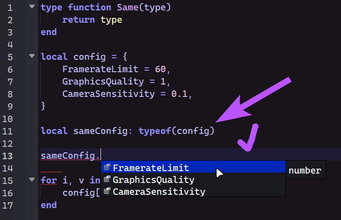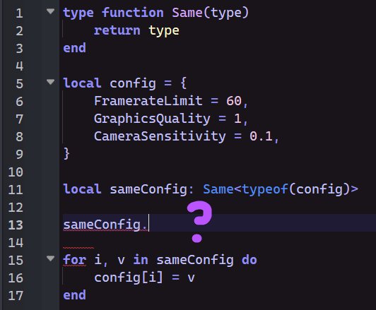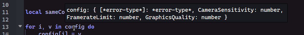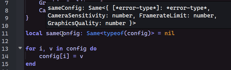 Using the new type solver, type functions don’t behave correctly when you pass typeof(table). The table could be anything, but if it gets modified by a for loop, the type function returns an unresponsive type (no autocomplete, but also no error-type symbol).