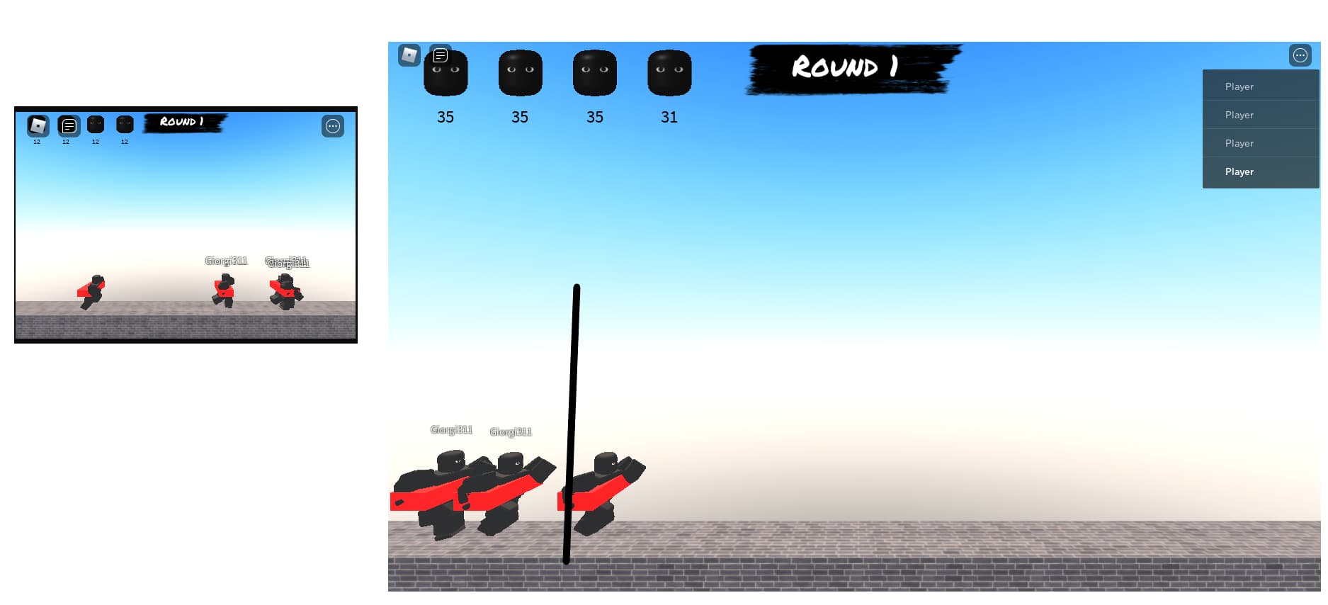 In the image above you can see the game on mobile and pc. The menu and chat icon is ruining the scoreboard, especially on mobile. I was thinking of moving the scoreboard to the left and putting the player scores on top of each other. It wouldn’t really bother the player itself because it can never go behind the drawn line (right image). The problem is that it might look weird and still be a bother for the player, since I personally wouldn’t like a GUI just behind the player all the time.