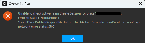 Unable to check active Team Create Session for place ‘117871558776454’. Error Message: ‘HttpRequest