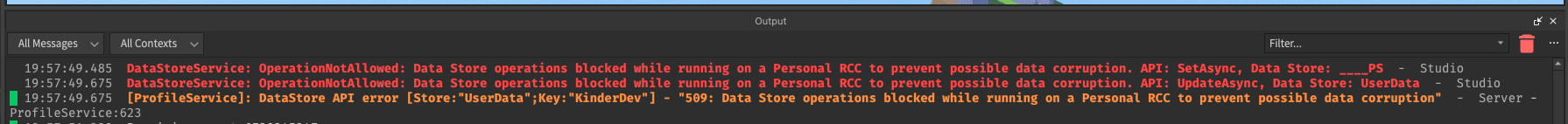 Hey! Today I was randomly added into some sort of RCC channel on Roblox Studio which prevents me from accessing datastores and thus play testing the new features that I’m working on in studio.