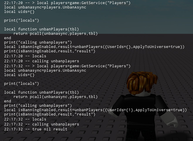 is this because i did something wrong or indexing players.UnbanAsync doesnt work even tho im passing players as self argument and then unban table