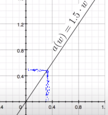 Looking at the activation as a function of weight : a(w) = 1.5 * w