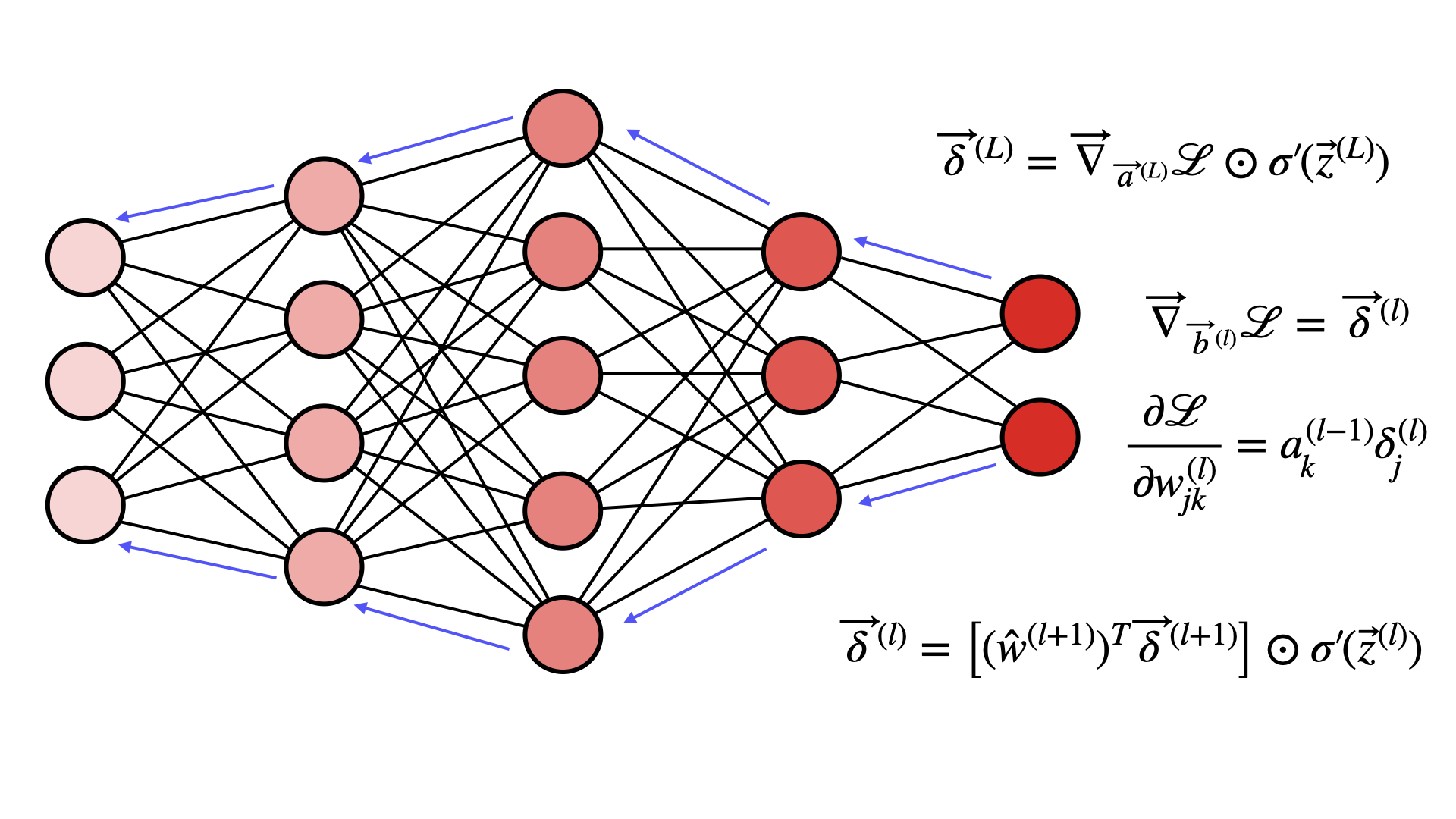(Example of an image that I found on internet after a quick search of backpropagation to show its complexity and its unfriendliness to the average reader, as in order to understand it requires knowledge of vector calculus)