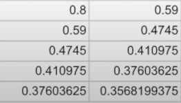 Now, if you remember our weight was 0.8 and so the new weight if you do the calculations will be 0.59. But then wait! We had seen in our graph above that the weight must be around 0.3 so we can get our expected result. Have we done anything wrong? The answer is no. If we continue replacing w0 with 0.59 finding the new w1 and continue this process we will have the following results: