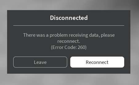 I see the code of “Error 260” which does of course represent of Data errors between the Client and Server. With Error 288 of just saying “Server Shutdown”.