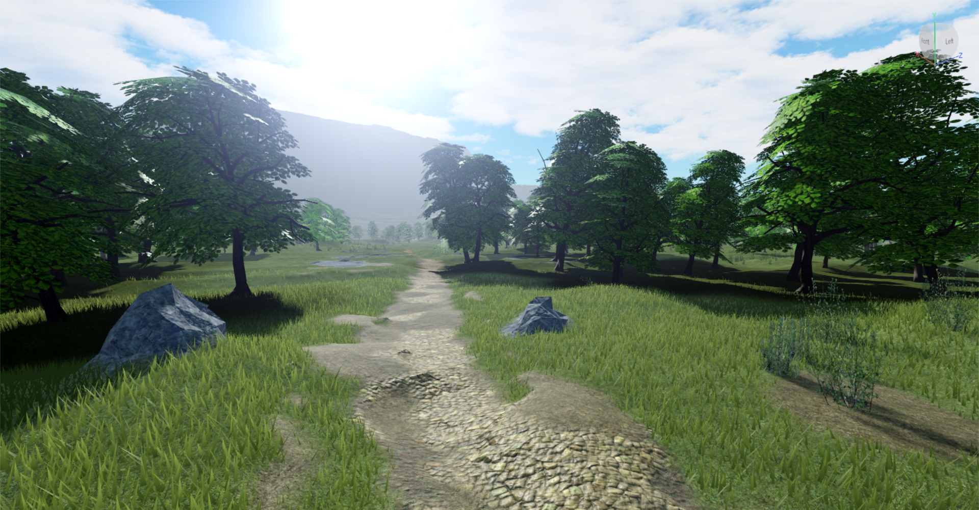 Day and night cycle and the trigger for certain weather and triggers for other effects should be arranged on the server while each client visualizes everything. All the lighting & weather data should be synchronized across all clients, even when there’s weather in progress and somebody just joined the game! - Another important thing would be region related things. Since the map’s big, the game should probably be split into multiple places meaning that there’d be teleporting between places. There should be fast travelling through ‘Obelisks of Life’. Next to that, there should be ‘Points of Interest’ which could play cutscenes and / or show a story in text about that particular place.