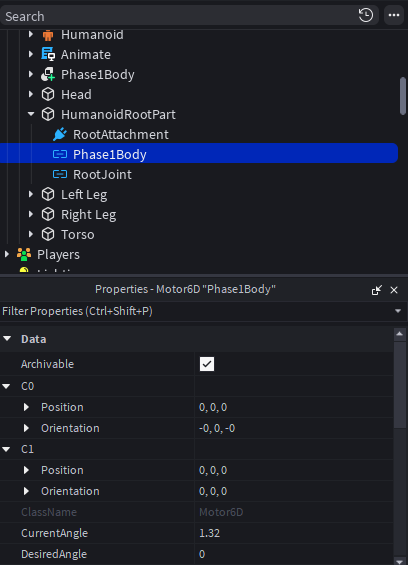 So I have a custom rig, and used a Motor6D to connect it to the humanoid root part, but when I go onto the animator to move it, it just doesn’t move or rotate and I don’t know why.