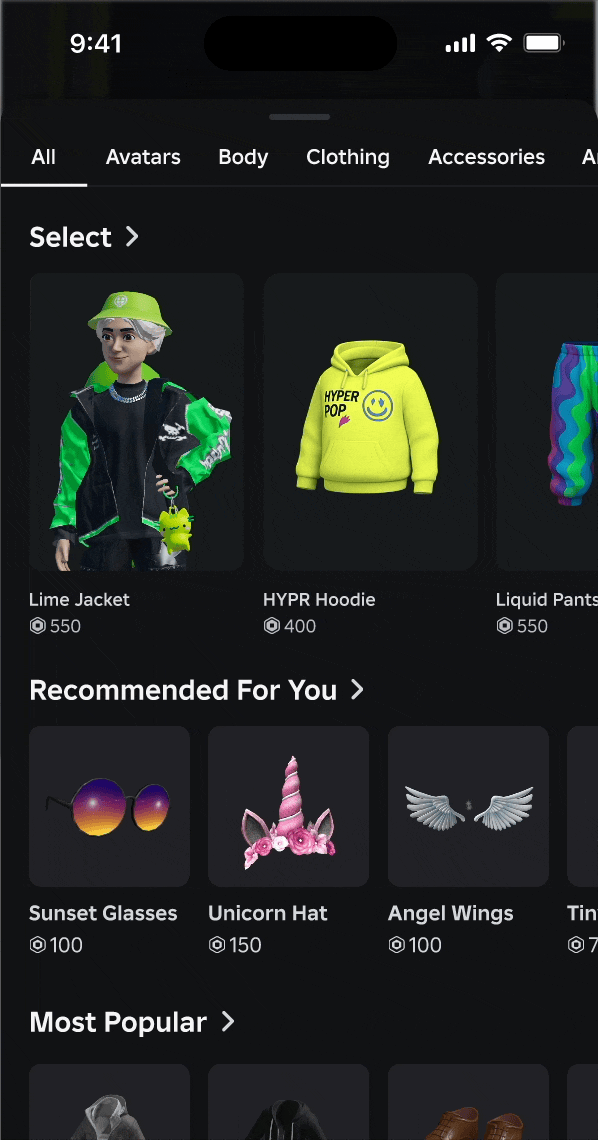 We are committed to providing you with the tools to serve all players, regardless of how they choose to express themselves. The roadmap below is designed to unlock new creative frontiers like Makeup and Animation Packs, while simultaneously launching new economic engines like Marketplace Select and Timed Options to help you build sustainable businesses. We are excited to announce new features to make publishing and selling avatars and avatar items easier, and to make discovering your creations more seamless. Ultimately - our goal is to help avatar creators create and sell cool assets, bringing more economic opportunity to the people producing these items and more ways for users to express themselves on the platform.