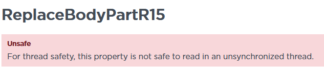 Since ReplaceBodyPartR15 is an “Unsafe” property - with no documentation on what is a “synchronized” or “unsynchronized” thread or how to fix it - it has a chance to kill the character.