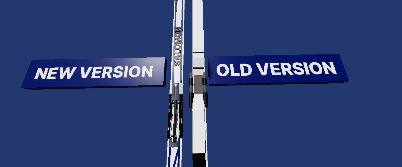 This model is alot advanced and detailled. The feet holder got replaced by multiples unions. Some cylinders got negated and unioned with balls for realism, A Better quality came for the feet holder. The body is the same but reworked, I removed the bad parts and added some decorations. As blue lines or Salomon symbol. It took me approximatively 30m for do this ski version. Actually, It doesn’t got used in any games. Here some pictures: