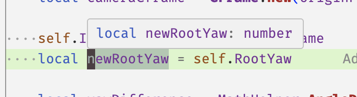 If you write local newRootYaw = self.RootYaw without the : any, normally newRootYaw should inherit RootYaw’s type, that is if Prototype is well defined.