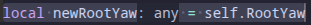 self.RootYaw is annotated as a number manually, but the variable gets annotated as any instead.