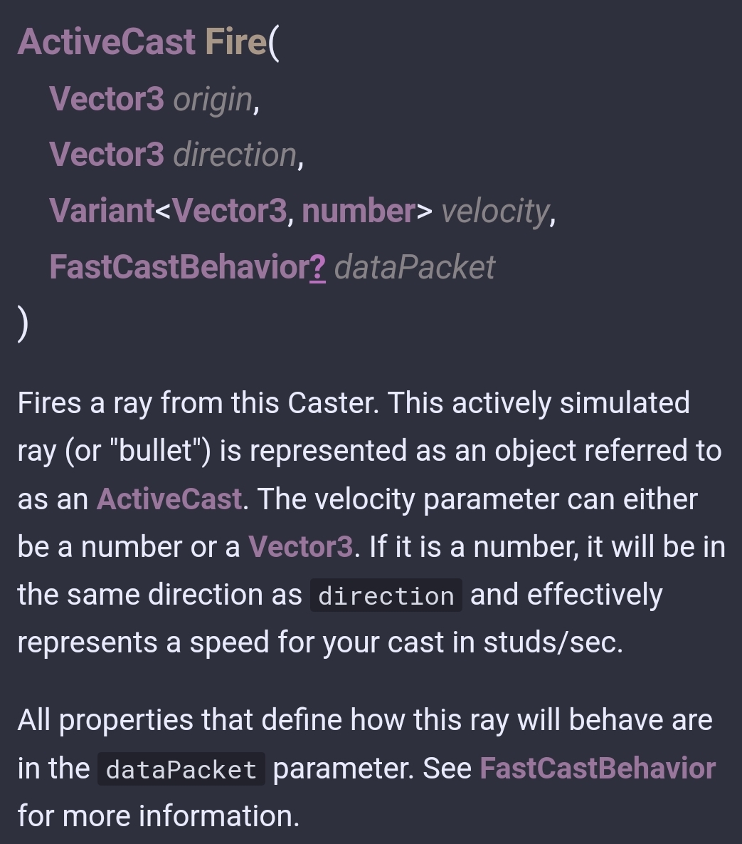 I mean I assumed FastCast was generally wellknown and/or my variable names were somewhat clear, but i guess both people were unsure of it so heres the API doc explanation; @ModernWarSciFite